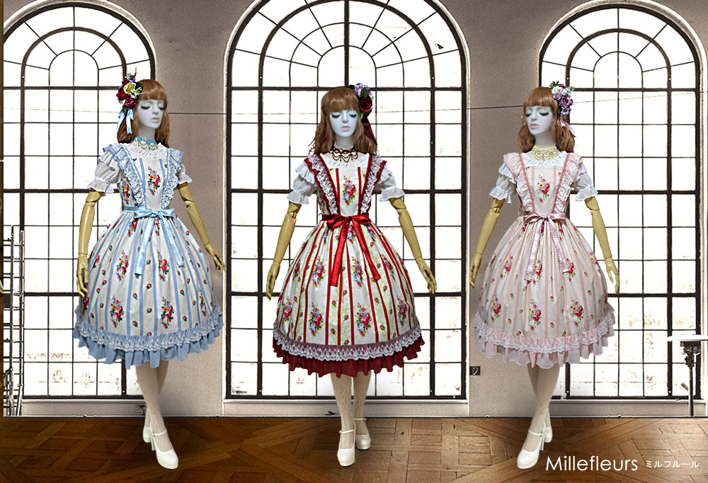 「薔薇ブーケとストライプのジャンバースカート」 [FJS-2102]